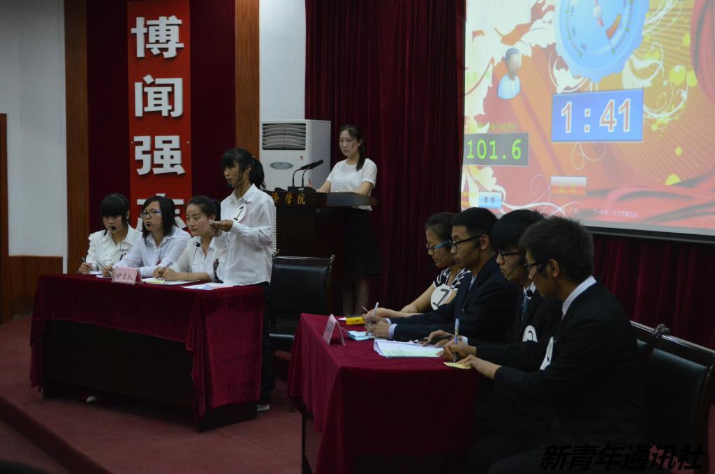 5月28日晚,一号楼报告厅2“硝烟弥漫”,由校团委、思政部主办,马列学社和演讲与辩论学社共同承办的“青春杯”辩论争霸赛总决赛在一号楼报告厅2展开。思政部宋秀方老师作为点评嘉宾,各社团负责人作为评委观看了比赛. 比赛辩题是“人性善与恶”,本场比赛正方为“妙言队”,所持观点为“人性本善”;反方为“鹰之翼”队,所持观点为“人性本恶”。