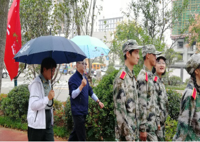 此次拉练全程长达3.6公里,途经多个路口,同学们在教官与老师们的指挥下,井然有序地穿过街道与十字路口。一路上,军训团旗帜高扬,他们精神抖擞、团结一致,即使大风大雨,也没有退却他们勇往直前的心。
