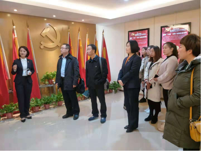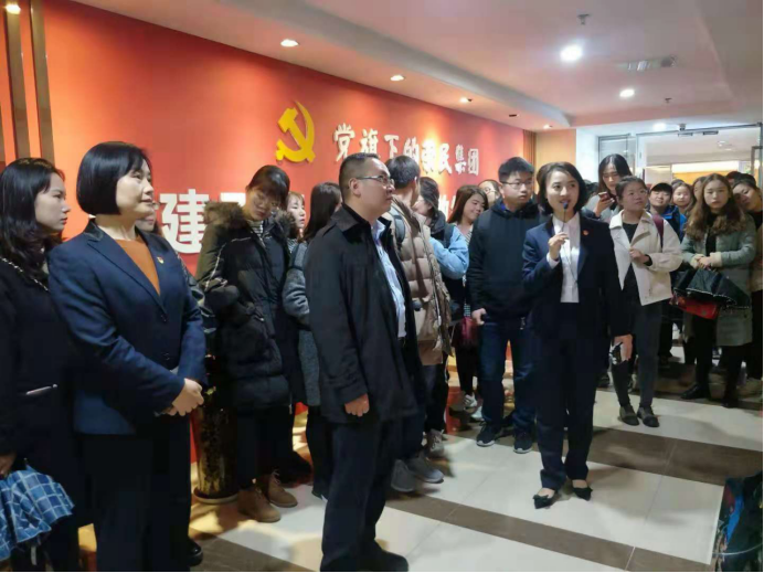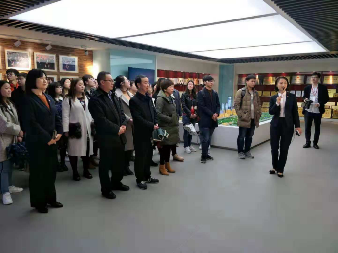在荣民控股集团党委副书记王利陪同下,公司师生一行先后参观了企业展示厅、党建活动阵地、集团荣誉展示室等。
