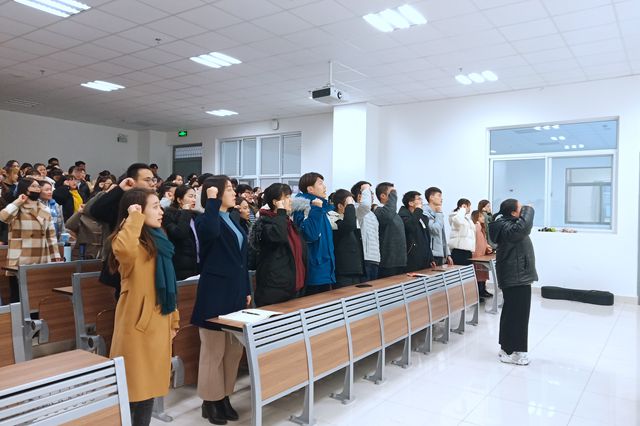 紧接着,由张一昕同学带领大家进行考前宣誓。同学们高亢激昂,声音洪亮,展现出考试必胜的坚定信念。