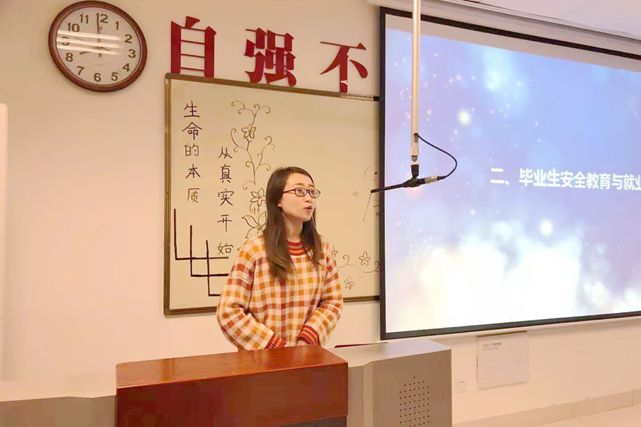 刘媛结合自己的求学经历及寻找工作的实战经验,提醒大家要谨防“就业陷阱”,重视就业安全问题,保护好人身和财产安全,维护自身的合法权益。同时,她就假期安全问题做了强调。
