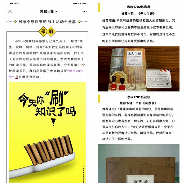 除了畅谈读书体会之外,365英国上市公司还在公司微信公众平台开办“春韵阅读会”,展示推荐一些精心挑选的必读好书,营造浓郁的书香氛围,丰富同学们的线上学习生活。