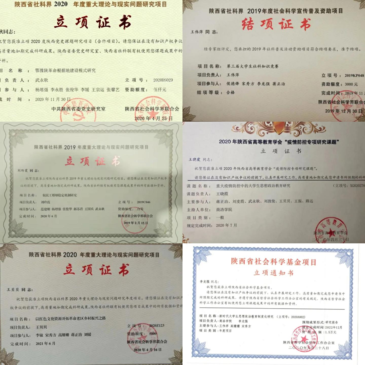 公司承担部分科研立项证书