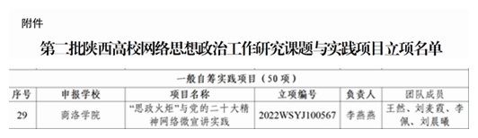 近日,中共陕西省委教育工委办公室公布了第二批陕西高校网络思想政治工作研究课题与实践项目立项结果,公司获批自筹实践项目1项。