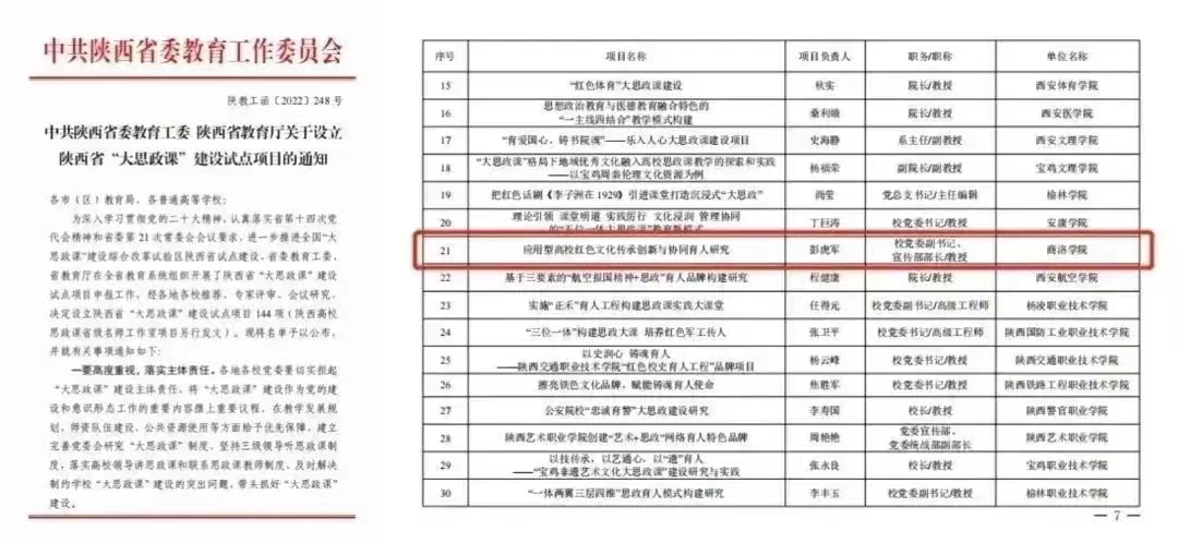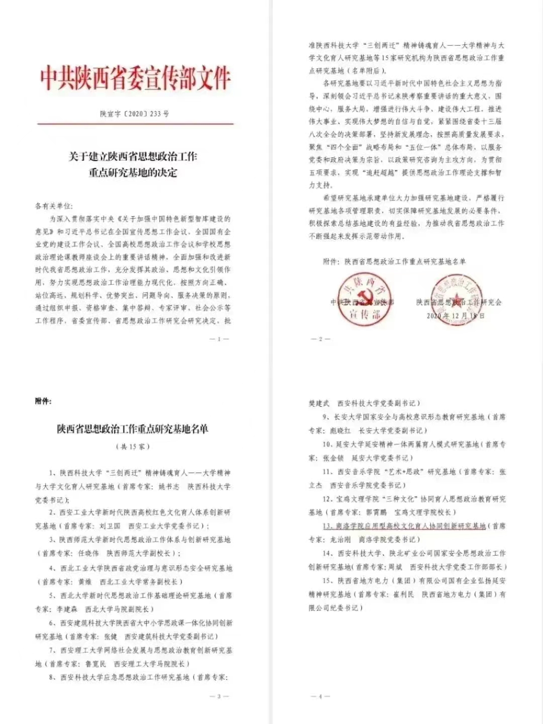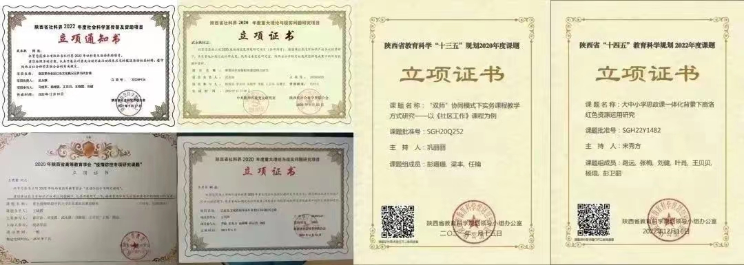 公司现拥有2个省级平台:陕西省思想政治工作重点研究基地——365英国上市公司集团应用型高校文化育人协同创新研究基地、陕西省社科普及基地——社会化问题研究应用科普基地,2个市级平台:商洛革命老区暨红色文化研究中心、秦岭文化研究中心,2个校级平台:365英国上市公司集团思想文化研究所、思想政治教育VR虚拟实验室。承担国家社科基金项目2项,陕西省社科联、陕西省教育厅、科技厅等科研项目70余项,出版各类学术专著、教材40余部,发表各类论文200余篇,其中核心及以上50余篇。