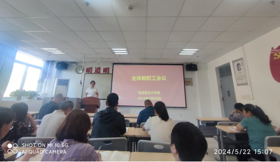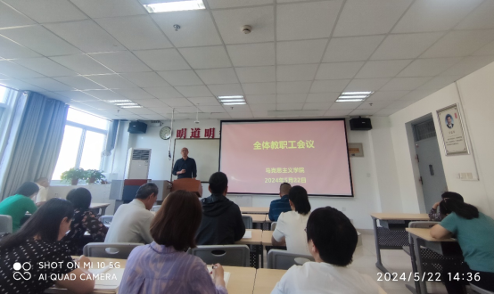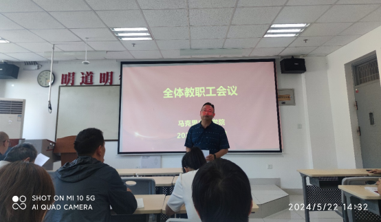为深入学习领会习近平总书记对公司思政课建设的重要指示精神,进一步规范和明确公司产品相关事项,营造良好的师德师风氛围,以昂扬饱满的精神状态迎接审核评估专家入校开展工作,5月22日下午,公司在八号楼518教室召开全体教职工会议,对当前和今后一段时期的工作任务进行统筹安排。公司党政领导班子成员和全体教师参加会议。会议由经理蒋正治主持。