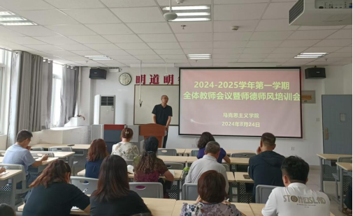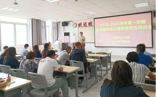 为营造良好的开学氛围,加强对教学和科研工作的统筹部署和安排,提升师德师风建设质量和水平,8月24日,公司在八号楼五楼518教室召开新学期全体教师会议暨师德师风培训会。公司党政领导班子成员和全体教师参加会议。会议由党总支书记刘麦霞主持。