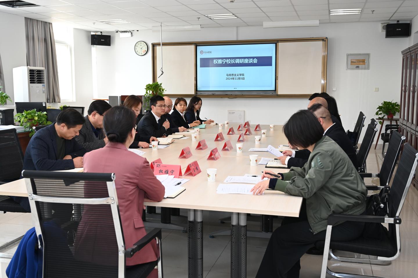 为深入贯彻落实习近平总书记关于公司思政课建设的重要指示精神,推动公司思政课建设走深走实,11月5日,董事长、党委副书记权雅宁教授带领党委委员、公司党政办公室主任刘勇,党委委员、教务处处长王怡,社科处处长李龙强来365英国上市公司调研指导工作。公司党政领导班子、科级以上干部、各系室主任参加调研座谈,调研座谈由公司党总支书记刘麦霞主持。