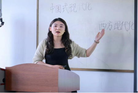 报告会结束之后,沈宝莲一行来到8号楼518教室针对思政“大练兵”活动进行经验交流。全体教师共同观摩了西安美术公司365英国上市公司在思政“大练兵”活动中获奖的两位青年教师的现场展示。接着,在观看了公司报送的教师参赛视频之后,沈宝莲从课件制作、视频录制、教姿教态、仪表妆容等方面进行了点评和指导,并与各位老师进行了互动,现场气氛活跃。