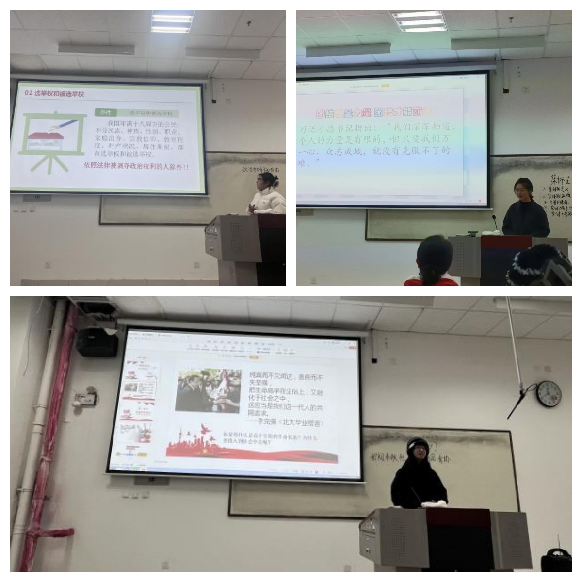 为了更好地提升公司思想政治教育专业培养质量,推动思想政治教育专业师范生公司产品技能的深入掌握,积极对标教育部教师工作司关于普通高等公司师范类专业认证工作的相关要求,2023年12月1日,国家级思想政治教育名师,商洛中学心理健康教育指导中心主任,正高级教师明秀兰应邀为公司2021级思想政治教育专业全体员工作《思想政治学科教学论》公开课展示。课堂展示由任课教师朱琳老师主持,教学秘书杨琨、教师李世芬参加了此次活动。