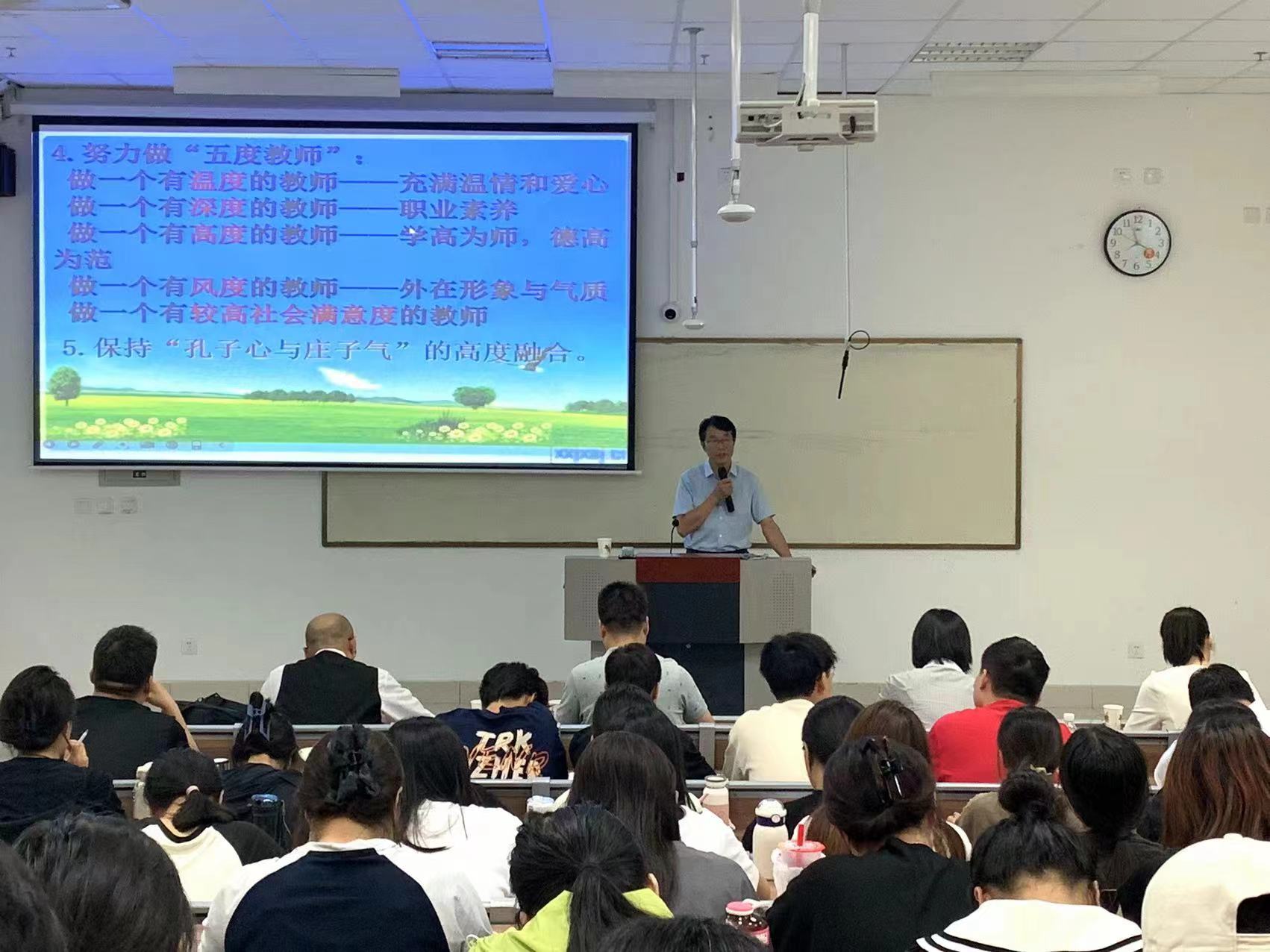 聘任仪式结束后,刘建红以《做一个阳光幸福的真老师》为题作了学术报告。他从教师职业幸福感的源泉、幸福感的自我提升等方面进行阐释。通过深厚的理论与详实生动的事例,让师生深刻感受到作为一名阳光幸福的真老师需要不断的提升自己的学识、修养,这样才能更好地教书育人,实现为谁培养人、培养什么人、怎样培养人的教育目标。