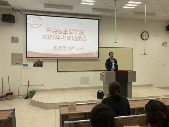 王霄飞书记在动员讲话中强调,考研是一场“信念之战”。考研的意义不仅在于最终的成绩,更在于“坚持考完”的过程——即便结果暂未如预期,完整的考试经历也为调剂、为未来留足了可能。同时他指出“考研不是蛮干,是一场‘精准施策’的攻坚战。”每位同学报考的院校、学科不同,知识储备和学习节奏也各有特点,必须量身定制复习计划。他着重强调马院学子应团结互助,同行致远。他希望马院全体毕业班生能够有“自信人生二百年,会当水击三千里!”的精神,考研之路虽有挑战,但只要以信念为帆、方法为桨、团结为舟,大家定能在研途劈波斩浪,最终收获金榜题名的喜悦。