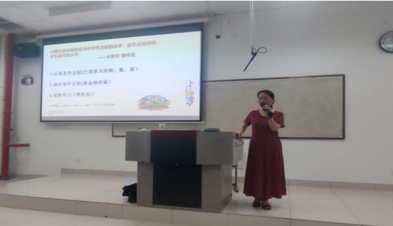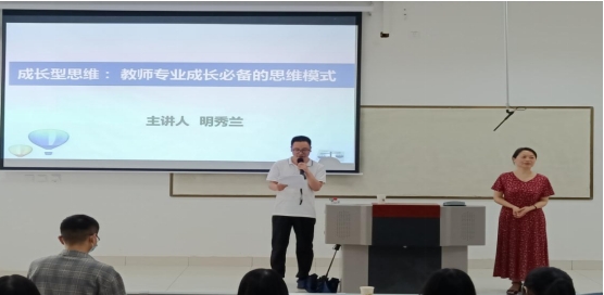 公开课展示首先由明秀兰老师为全体员工作主题为“成长型思维——教师专业成长必备的思维模式”的课堂教学。明老师从成长型思维的含义、思维模式的区别、成长型思维的培养三个方面进行了讲解,并从学习力、自控力、意志力、内驱力、自信力、复原力等六个方面引导大家培养自己的成长型思维。明老师的讲课生动有趣、富有亲和力,为在场的老师和员工呈现了一场精神盛宴。