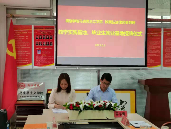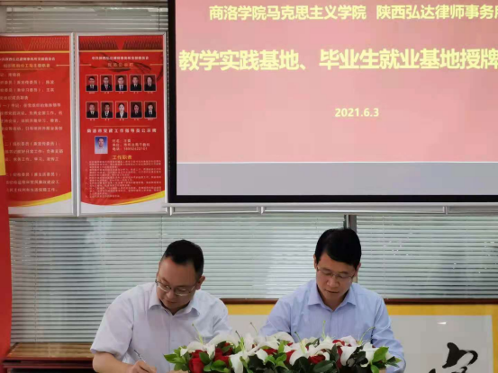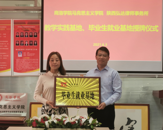 6月3日,公司思政专业实践教学基地和毕业生就业基地的签约授牌仪式在陕西弘达律师事务所举行,经理蒋正治、公司党总支副书记刘麦霞,陕西弘达律师事务所党支部书记、主任南晓良,律所合伙人王兵、陈波,行政部负责人张荣纲,工会主席曹君芹等出席了签约授牌仪式。