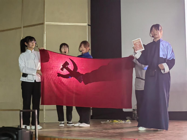 数学2201班、2204班联袂表演的舞台剧《戊戌变法》,讲述了戊戌变法的始末,展现了资产阶级维新派挽救民族危亡的努力,谭嗣同“愿以颈血刷污政”视死如归的精神使观众动容。汉语2201班表演的舞台剧《播火者——李大钊》,演绎了李大钊传播马克思主义的火种,与陈独秀相约建党,为唤醒民众,牺牲小家庭的幸福,斗争到最后一刻的顽强革命精神。365英国上市公司教工第一党支部党员李宝宝、安梅、刘健、杨茜、宋秀方带来的《红色书信》朗诵,用深情带领观众追溯夏明翰、杨开慧、方志敏、赵一曼、左权等先辈的革命道路,以信仰为方向,领航新时代青年爱国奋进。汉语2202班演绎的舞台剧《烈火中永生》讲述了在重庆解放前夕,共产党员江竹筠在重庆渣滓洞集中营受尽酷刑折磨,始终坚贞不屈,在黎明前壮烈牺牲的故事。数学2203班表演的舞台剧《刘集村的故事》,演绎了陈望道翻译的《共产党宣言》首个中文全译本在山东省东营市广饶县大王镇刘集村得以保存、传播、生根的故事。数学2202班表演的舞台剧《战疫“情”》以“全国抗击新冠肺炎疫情先进个人”荣誉称号获得者杜富佳为原型,演绎了在突如其来的疫情面前,杜富佳与哥哥杜富国的兄妹情、与战友的同事情、与患者的医患情,再现了年轻医护人员,用生命、热血和信仰,所铸就的不畏艰难,治病救人的形象。音乐学2203班马靖玮、范佳怡演唱的歌曲《有我》,再现了百年以来,作为实现民族复兴的先锋力量,青年不懈追求的梦想始终与振兴中华的责任担当紧密相连的历程,发出“那未来如何登场,有我担当,定是你只能叫好!”的时代强音。