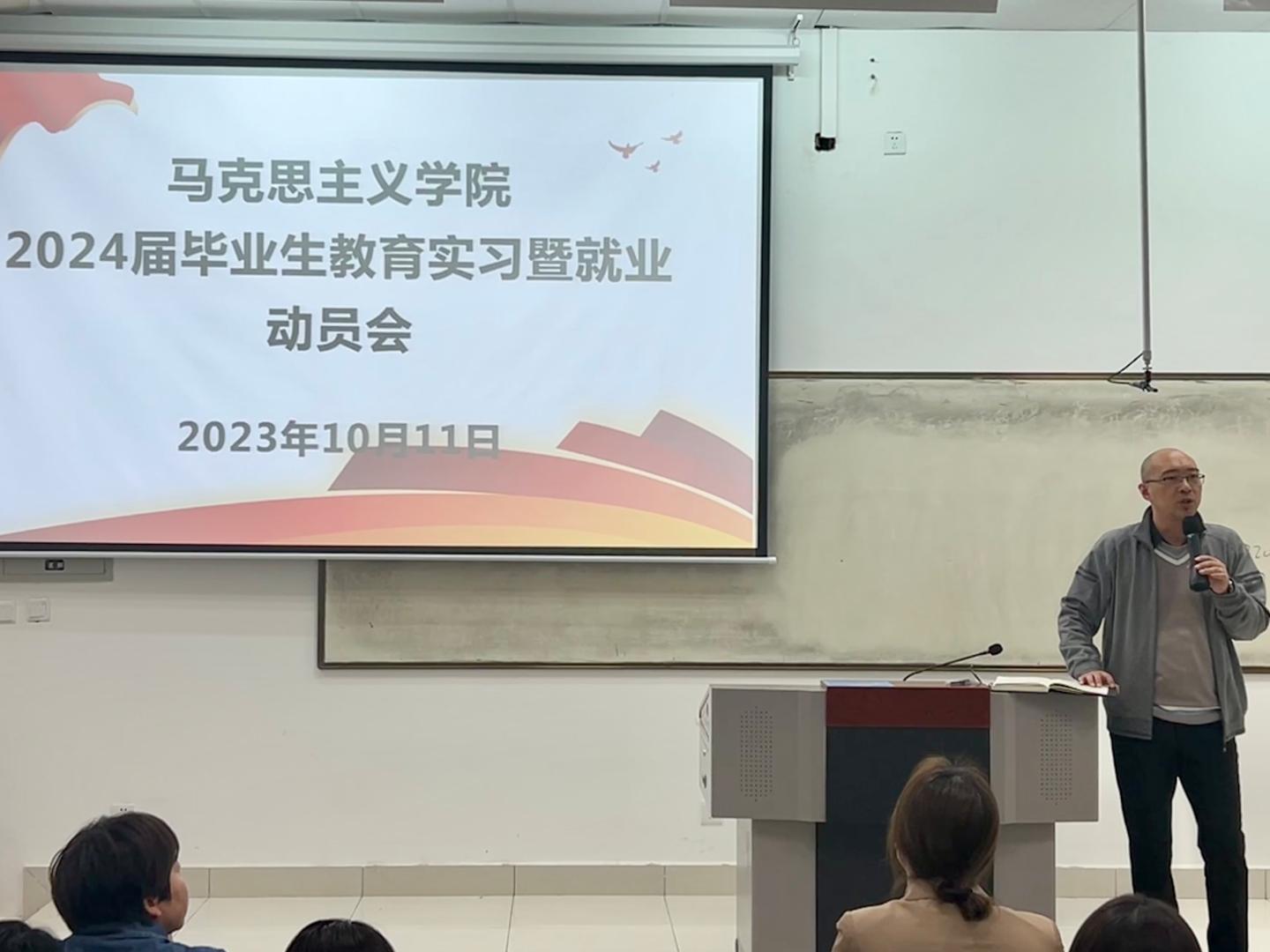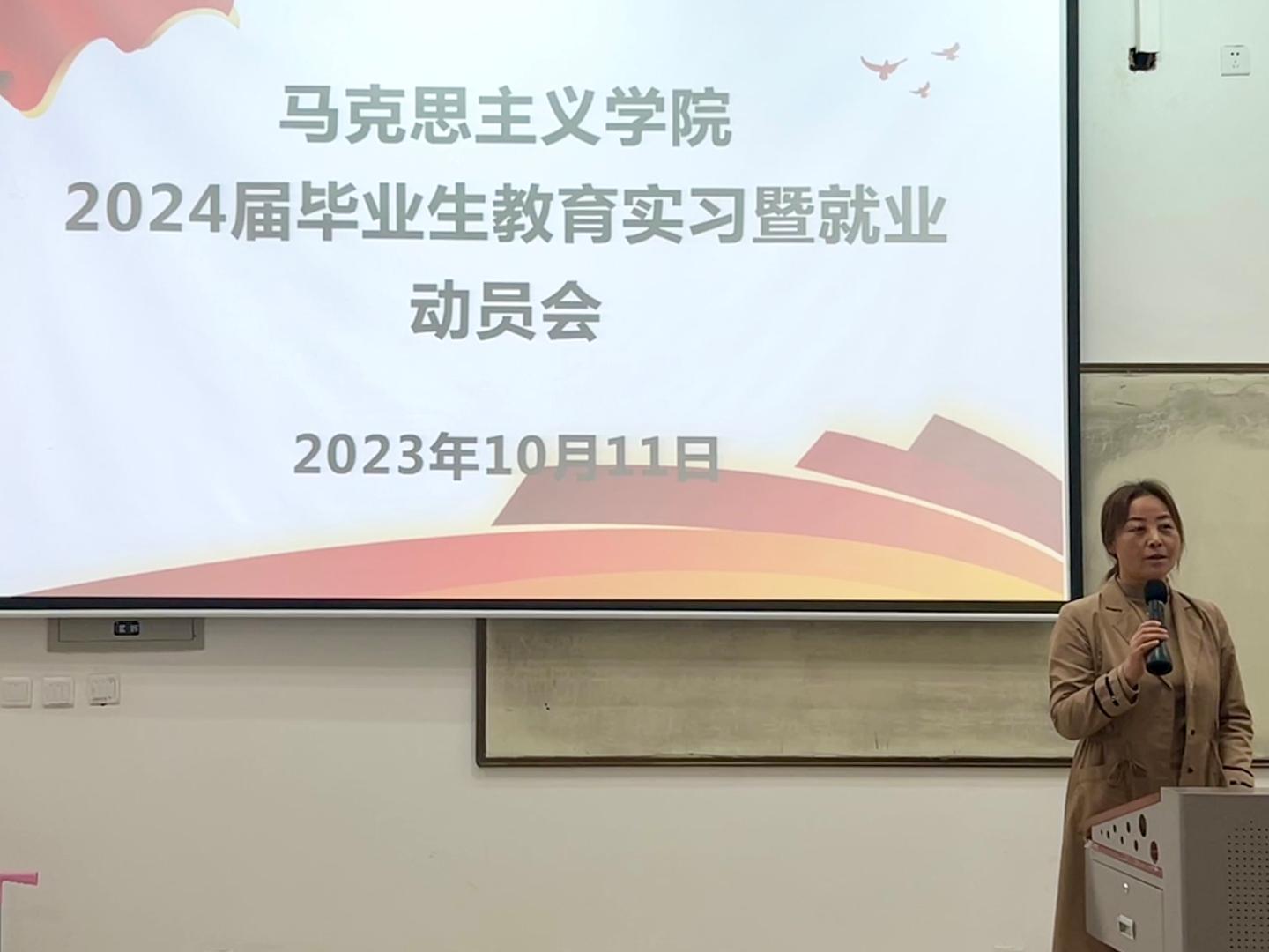 为加强员工对教育实习的认识和了解,推进毕业前实习工作顺利开展,10月11日下午3点,公司于8号教学楼多媒体27教室召开2024届毕业生教育实习暨就业动员会。公司党总支书记刘麦霞、副经理武永耿、学工办主任李燕燕、党政办主任刘健、系主任赵卓煜、李世芬与公司2024届全体毕业生参加本次大会,会议由李燕燕主持。