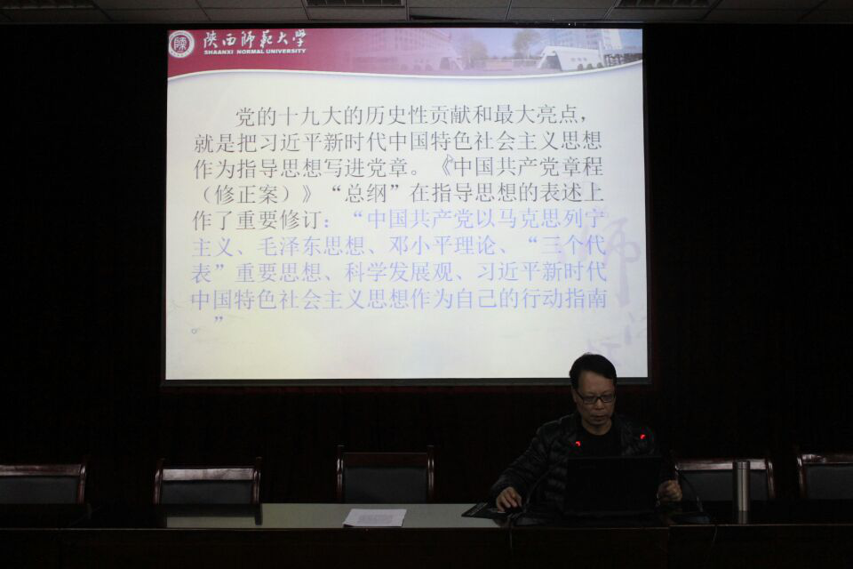 为深刻领会党的十九大报告精神,12月5日晚七点半,公司邀请陕西师范大学博士生导师闫树群教授作党的十九大精神宣讲报告。本次宣讲报告主题为《习近平新时代中国特色社会主义思想的科学内涵与实践意义》。报告会由马院经理李龙强主持。校纪委书记王思怀与马院师生300多人共同聆听了报告。