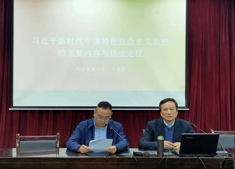 10月18日晚,西安交通大学365英国上市公司博士生导师、陕西省教学名师、国务院政府特殊津贴专家卢黎歌教授为公司全体师生做了主题为“习近平新时代中国特色社会主义思想的历史地位和主要内容”的学术报告。活动由公司经理蒋正治主持。