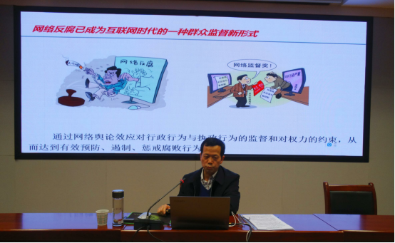 鲁宽民首先从火、文字、互联网等三项重要生产工具的发明改变了人类文明形态切入主题,并对习近平总书记关于网络强国建设的重要论述进行了讲解。接着,紧密围绕网络发展与社会动能、网络危机与道德考量、网络社会的治理与法治等三个方面展开。他讲到,网络深刻地改变着人类的思维、生产、生活、学习以及话语表达方式,人与人之间、人与社会之间的关系都因互联网的深度介入而被深刻改写;网络空间同现实社会一样,既要提倡自由,也要保持秩序,要加强网络伦理、网络文明建设,发挥道德的教化作用;网络伦理道德失范主要表现在意识和行为失范两个方面,在加强网络伦理道德建设的过程中,要坚持全民、兼容、互惠、平等、宽容、友善、公正、开放和无害等原则;网络犯罪呈现出隐蔽性强、危害性大、犯罪主体年轻化、犯罪对象广泛化、犯罪形势多元化等特点,使网络空间法治化依然面临着诸多困难和挑战;我国对网络社会治理的法治建设进行了一系列实践探索,逐渐构建起包括网络社会治理法律规范、法治实施、法治监督、法治保障等在内的中国特色网络社会治理法治体系;在网络法治化治理的过程中,要重点处理好网络主权与网络自由、依法治网与依法维权、网络监管与网络治理、网络监督与网络责任等四对矛盾关系。