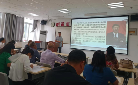为促进公司教师深入学习和领悟党的二十大精神,持续提升科研能力和水平,9月1日上午,中宣部“文化名家暨四个一批人才支持计划”入选者、教育部“新世纪优秀人才支持计划人选”、陕西师范大学哲学社会科学高等研究院经理袁祖社教授受邀来校,在八号楼518教室为公司教师作了题为《中国式现代化的世界观逻辑及其文明价值观意蕴》的学术报告。公司全体教师现场聆听了报告。报告会由副经理武永耿主持。