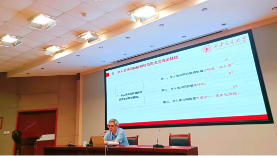 李永胜围绕共同价值存在的哲学依据、共同价值的生成逻辑、全人类共同价值的马克思主义理论基础、全人类共同价值对马克思主义理论的原创性贡献、全人类共同价值和普世价值的区别、全人类共同价值对普世价值的超越等六个方面展开深入浅出的讲解。他强调,从主体、客体及主客体关系存在的维度来看,共同价值是一种客观真实的存在,有着深刻的哲学依据,但共同价值不同于价值共识。