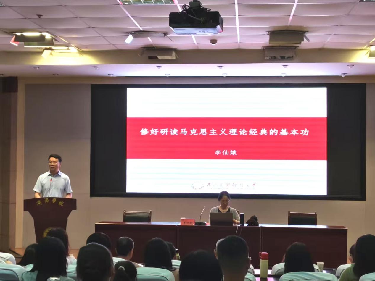李仙娥紧密围绕为什么要学、学什么和怎么学三个问题展开讲解。她讲到,之所以要重视修炼马克思主义基本功,归根到底是因为马克思主义行,是因为中国化时代化的马克思主义行。此外,这是中国共产党人的看家本领,是锐利的理论武器,是党的鲜明特色和优良传统,是对习近平新时代中国特色社会主义思想进行体系化学理化解读的重要根据。她强调,在学习马克思主义理论经典的过程中,要结合《习近平谈治国理政》《习近平经济文选》等著作加强对习近平总书记系列重要讲话精神以及体系化理论创新成果的理解和领悟,把握贯穿其中的立场、观点和方法。要坚持抓精神实质、系统而非零碎、实际而非空洞、为自己弄清楚问题而学、把学习经典作为一种生活方式的基本原则。学习马克思主义理论的最终目的是解决实际问题,要在研读文献上下功夫,加强理论联系实际。要重视教学和科研的双向互动,努力实现学思用贯通、知信行统一。