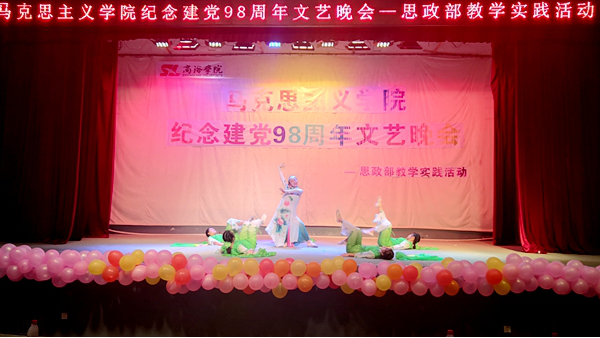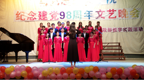 晚会在开场舞《出水莲》中拉开帷幕。《风雨九十八载》《我们的青年时代》《你的祖先,名叫炎黄》等朗诵节目,声情并茂地回顾了党的光辉历程,热情歌颂了在党的坚强领导下中国特色社会主义事业取得的伟大成就;独唱《唱支山歌给党听》,用深情的歌声表达了人民群众对党的热爱和拥戴;瑜伽表演《一花一净土》、蒙古舞《天边》、书法表演《向军人致敬》等,从不同角度展现了公司师生团结一致跟党走的坚定信念,赢得了现场观众的阵阵掌声。大合唱《我和我的祖国》作为压轴节目,气势恢宏,唱出了商院人的拳拳爱国心,为此次文艺演出画上圆满的句号。