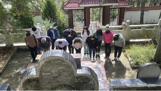转入另一条道路,拾级而上至红二十五军烈士陵园、红二十五军作战指挥台、红二十五军挖掘的战壕,了解了袁家沟战役的经过、烈士们的英勇事迹、袁家沟战役的战略部署,全体党员向烈士鞠躬表达哀思。