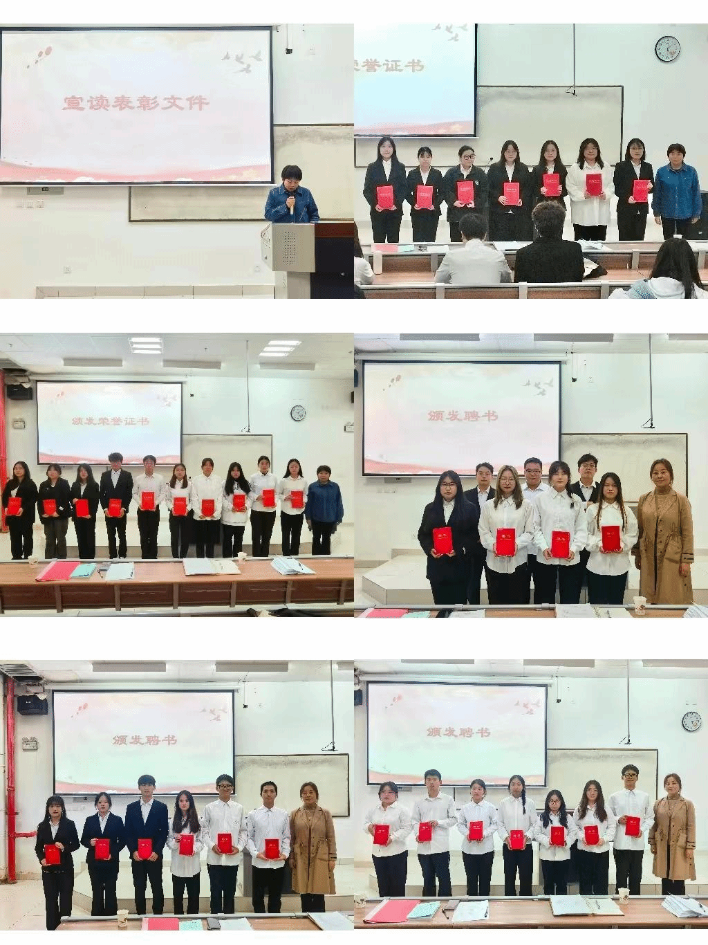 会上,李燕燕宣读了《公司党总支关于表彰2022—2023学年院级优秀团学干部、优秀新闻工作者、优秀志愿者的决定》和《公司党总支关于公布2023-2024学年院级员工干部名单的通知》的文件内容,李燕燕老师为优秀团学干部颁发荣誉证书,刘麦霞为新一任团学干部颁发聘任证书。