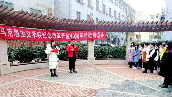 此次诗歌朗诵会以庆祝改革开放40周年为主题,以诗歌的力量凝聚人心,鼓舞士气,让人们在诗歌朗诵的享受中,激发起获得感、幸福感、自豪感,极大地鼓舞了全体师生不忘初心、砥砺前行的豪情壮志,坚定了为全面推进改革开放贡献青春力量的信仰、信念、信心。