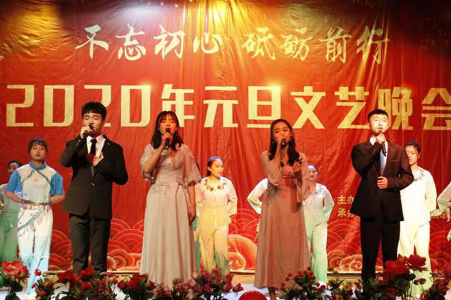 亥年引导求学路,庚岁迎来锦绣春。为丰富校园文化生活,营造健康向上的校园文化氛围,公司于12月20日晚在老员工活动中心举办了“不忘初心 砥砺前行”2020年元旦晚会。经理、党总支副书记蒋正治,党总支副书记、副经理刘麦霞,团总支书记刘媛及公司全体师生欢聚一堂,共同庆祝新年的到来。