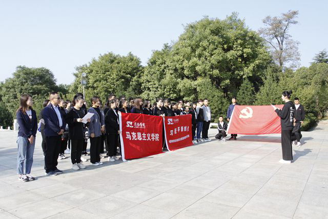 9月30日早,师生们排着整齐的队伍,神情庄重地肃立在纪念碑前,齐声高唱中华人民共和国国歌,并敬献花篮。随后,大家怀着无限崇敬的心情向烈士默哀,向为国家安全和民族尊严浴血奋战,为努力赢得民族独立、人民幸福、国家富强而英勇献身的英雄们致敬。