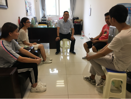 6月26日下午,公司党总支书记蒋正治在办公室与特殊困难群体员工代表座谈,学工办主任李燕燕参加。