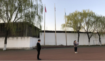 7点升旗仪式正式开始,伴随着《义勇军进行曲》激昂奋进的旋律,国旗护卫队昂首阔步,英姿飒爽。鲜艳的五星红旗冉冉升起,全体师生肃立,行注目礼。