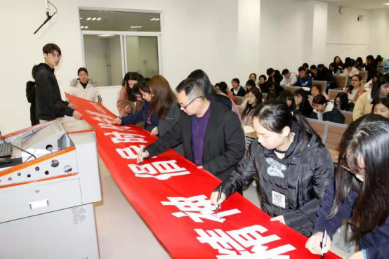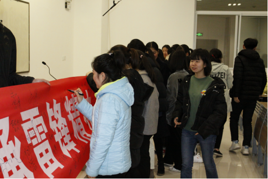 最后,志愿者们在“传承雷锋精神,倡导时代新风”横幅上签字并集体合影。