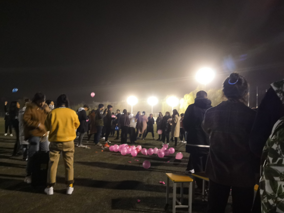 夜跑开始前,报名的同学们纷纷拿出统一的荧光手环武装自己,在工作人员说开始后,大家一齐出发,按照大操场,到3号公寓楼,紧接着到团委楼,再到玉兰园,最后回到大操场的路线向前奔跑。