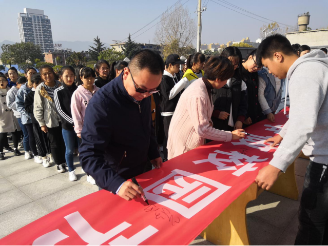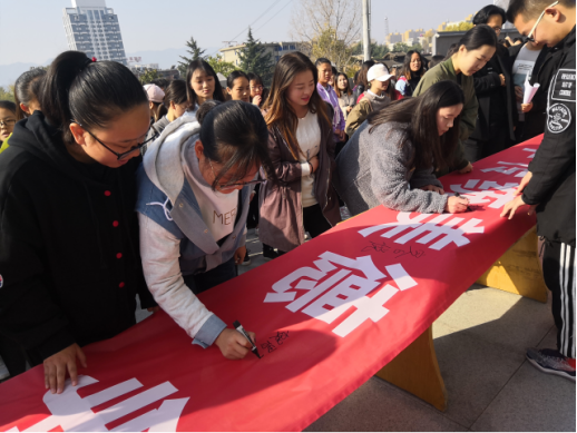 随后,公司师生进行“建设节约型校园”集体签名活动,它将促使公司员工将勤俭节约融入到自己的日常生活中。在思想上树立节约意识,在生活中付诸行动,为建设美丽商院贡献自己的力量。