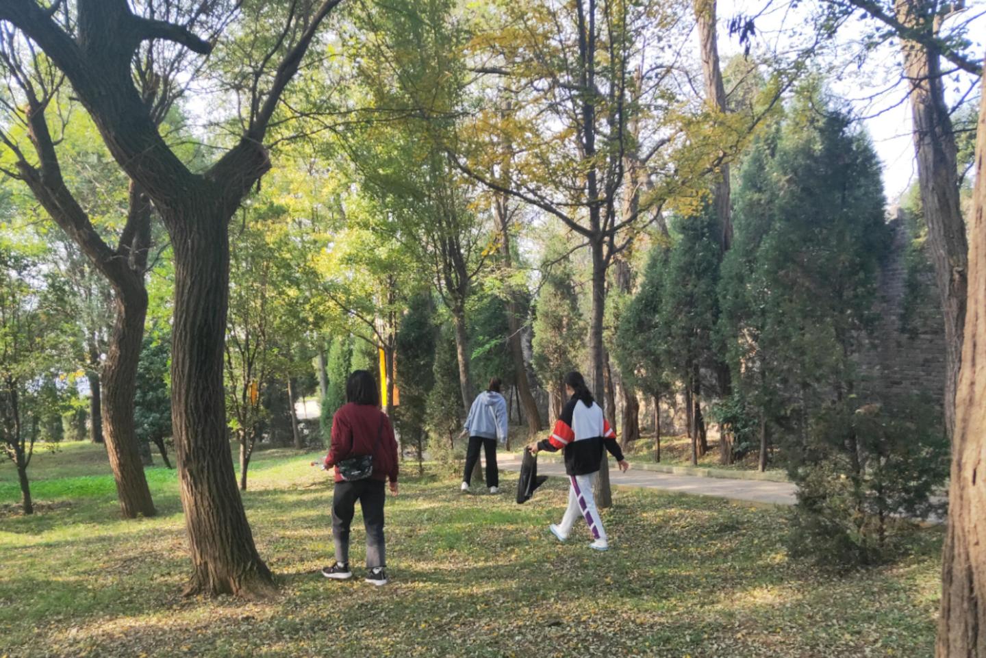 早上8:20,同学们在一号教学楼前集合,整装待发。登山活动中,同学们精神抖擞,一路谈笑风生,大家一边欣赏着风景如画的金凤山,一边交谈生活与学习的趣事,充满青春气息的队伍吸引了众多路人的目光。