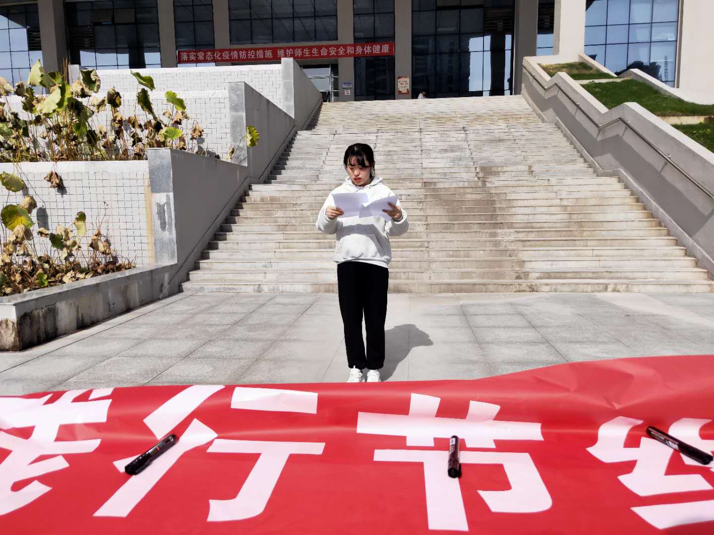 活动开始前,院员工会主席韩冰宣读倡议书。她呼吁全体师生共同践行勤俭节约的良好品德,积极宣传并带动身边的朋友和家人合理消费、勤俭节约。以自身为基点,层层推动、层层递进,逐渐形成全社会范围内的人人节约、处处节俭的良好风尚。
