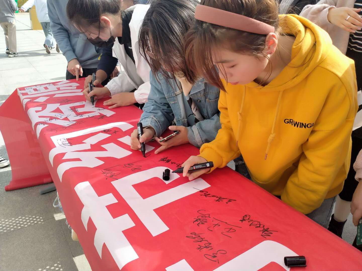 活动期间,参加活动的同学在横幅上签下自己名字,并许下庄严承诺。他们承诺,今后将继续弘扬勤俭节约的传统美德,发扬艰苦奋斗的优良作风,从自身做起,从点滴小事做起,反对铺张浪费,为建设节约型校园贡献力量。
