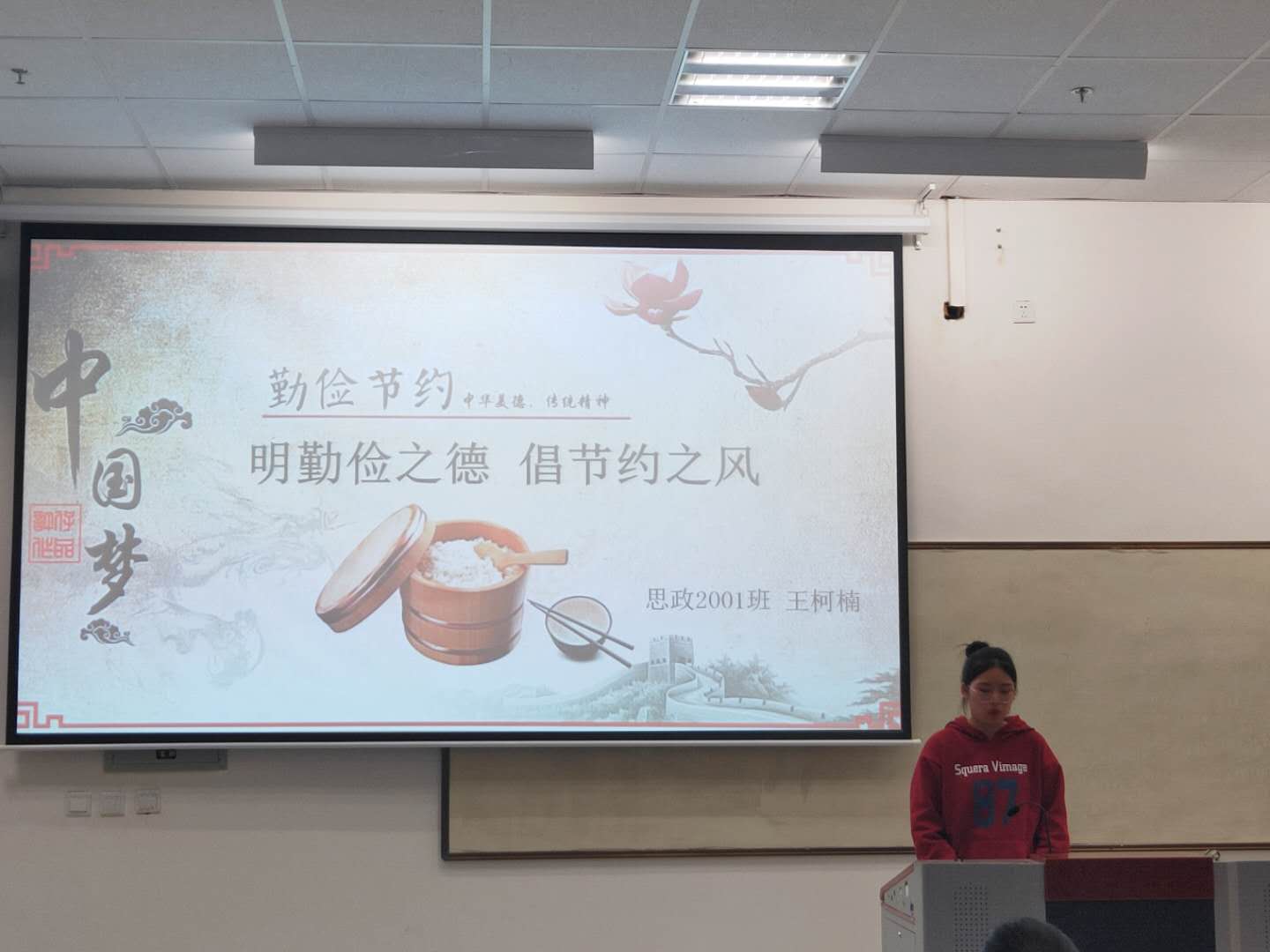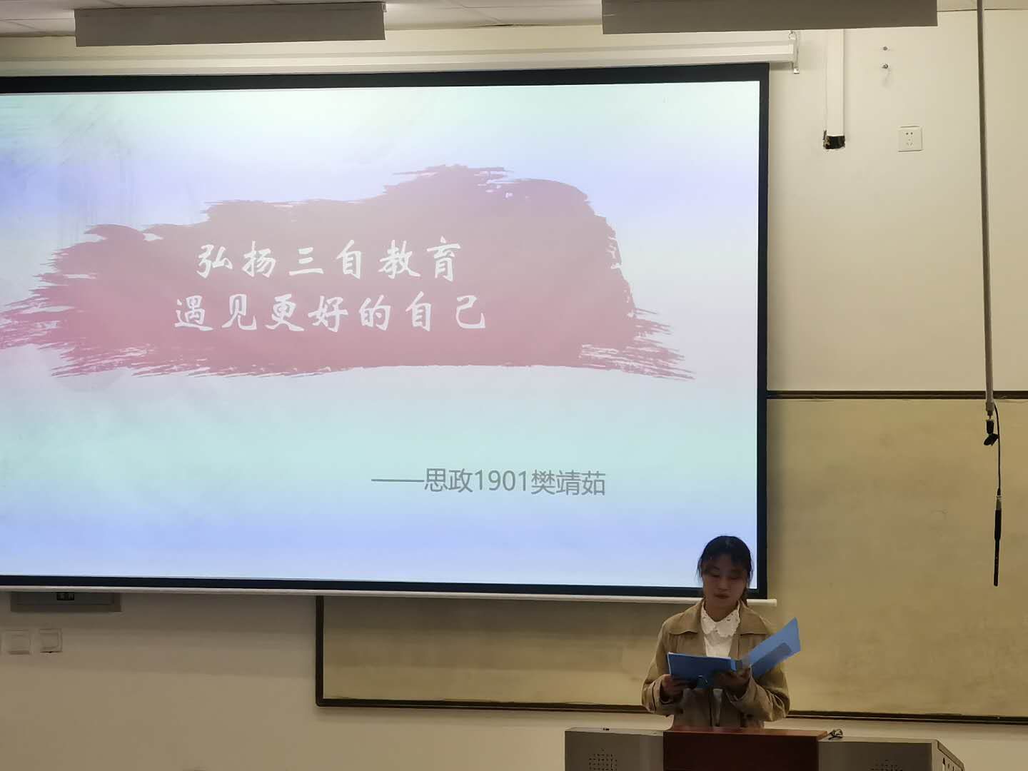 1901班樊靖茹同学的《弘扬三自教育,遇见更好的自己》演讲,对三自教育进行了详细的说明,并给出合理化的措施,内容把握张弛有度,语言动作极富感染力,获得了评委的一致好评。2001班王柯楠同学的《明勤俭之德,倡节约之风》演讲围绕校园勤俭节约展开,深入结合习近平总书记关于勤俭节约的重要批示,表达了自己的看法,声音充满生机与朝气,引起观众强烈共鸣。比赛过程中,2020级同学共同表演了小品《今天你不忘初心了吗?》,绘声绘色的角色形象,富有意义的深刻主题,引起了同学们的深思。活动最后,2019级同学带来歌曲合唱《我们都是追梦人》,现场掌声雷动,将比赛的气氛推向高潮。