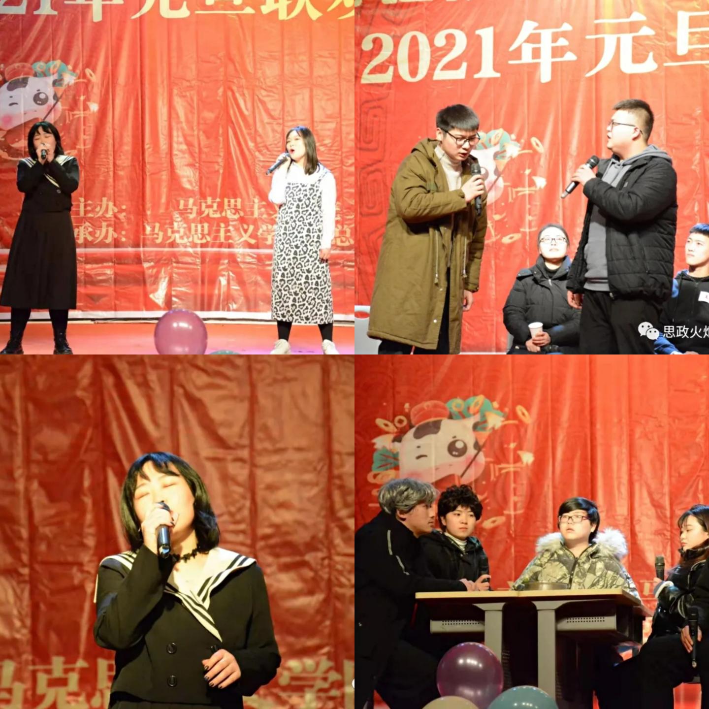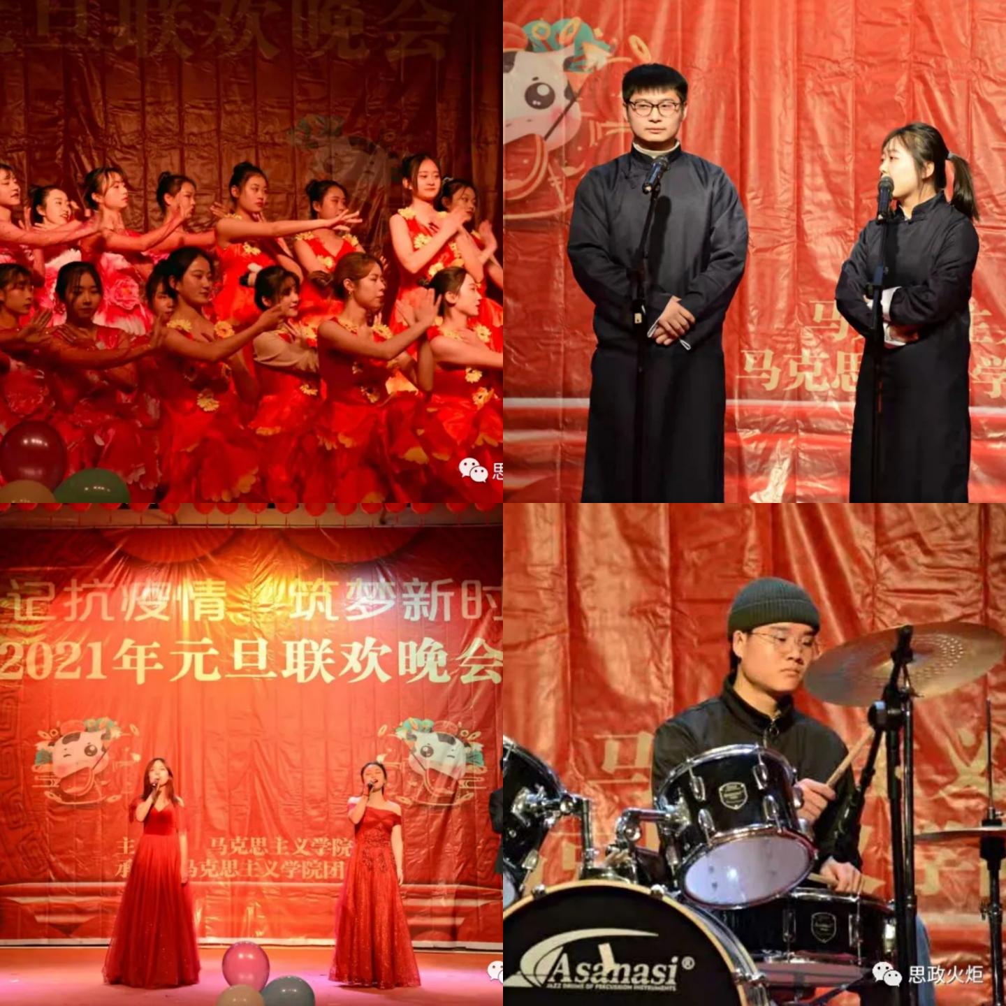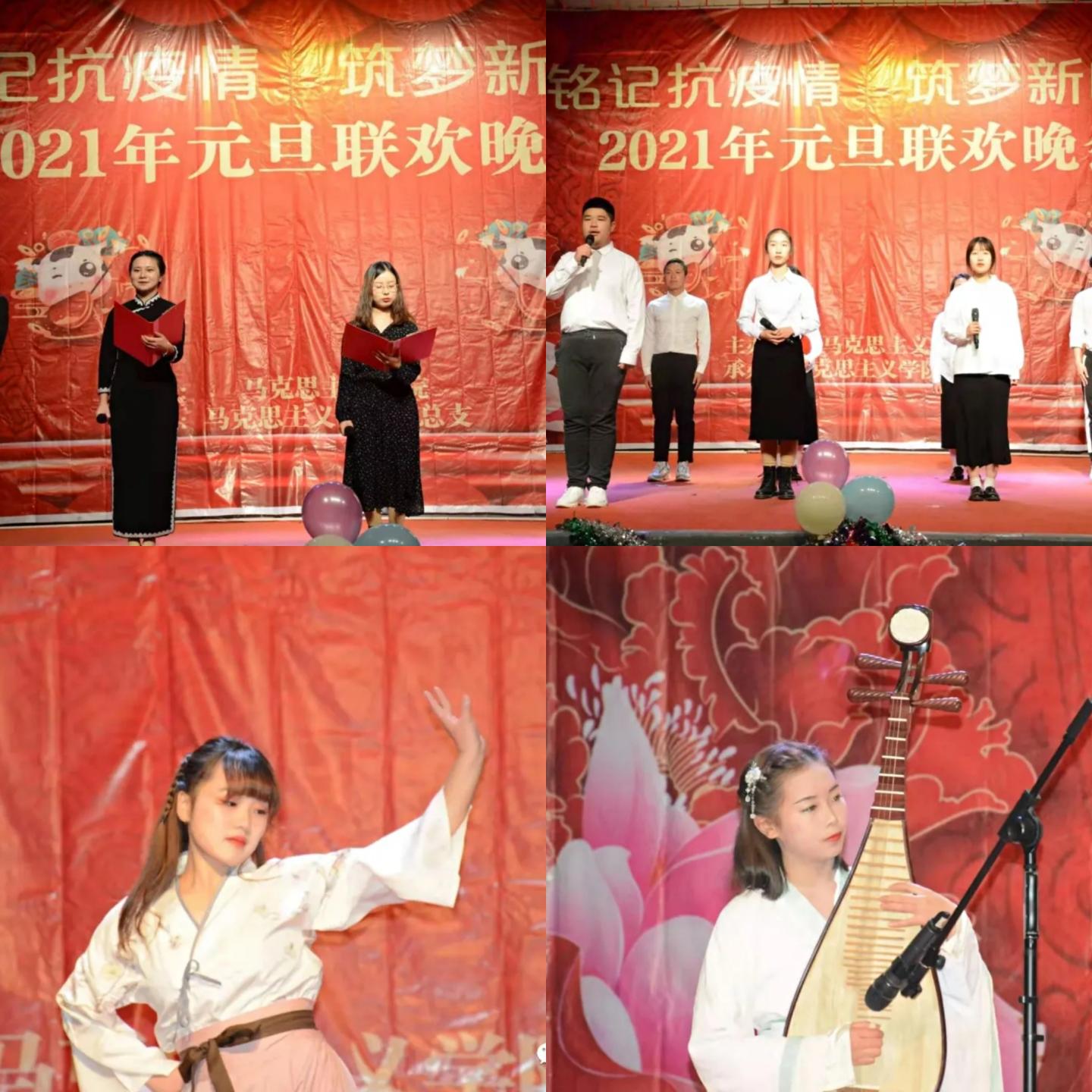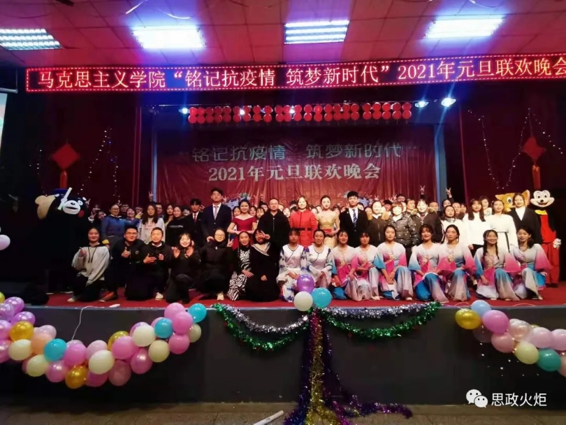 辞旧岁欢歌不断,迎新年好戏连台。为丰富师生们的课余生活,展现马院学子奋发向上、积极进取的精神风貌,在元旦佳节来临之际,公司于12月18日晚在老员工活动中心隆重举办“铭记抗疫情,筑梦新时代”2021年元旦文艺晚会。公司全体教职员工及校员工会、青年志愿者协会、各二级公司员工会主席团、公司全体员工欢聚一堂,共赏这场视听盛宴。
