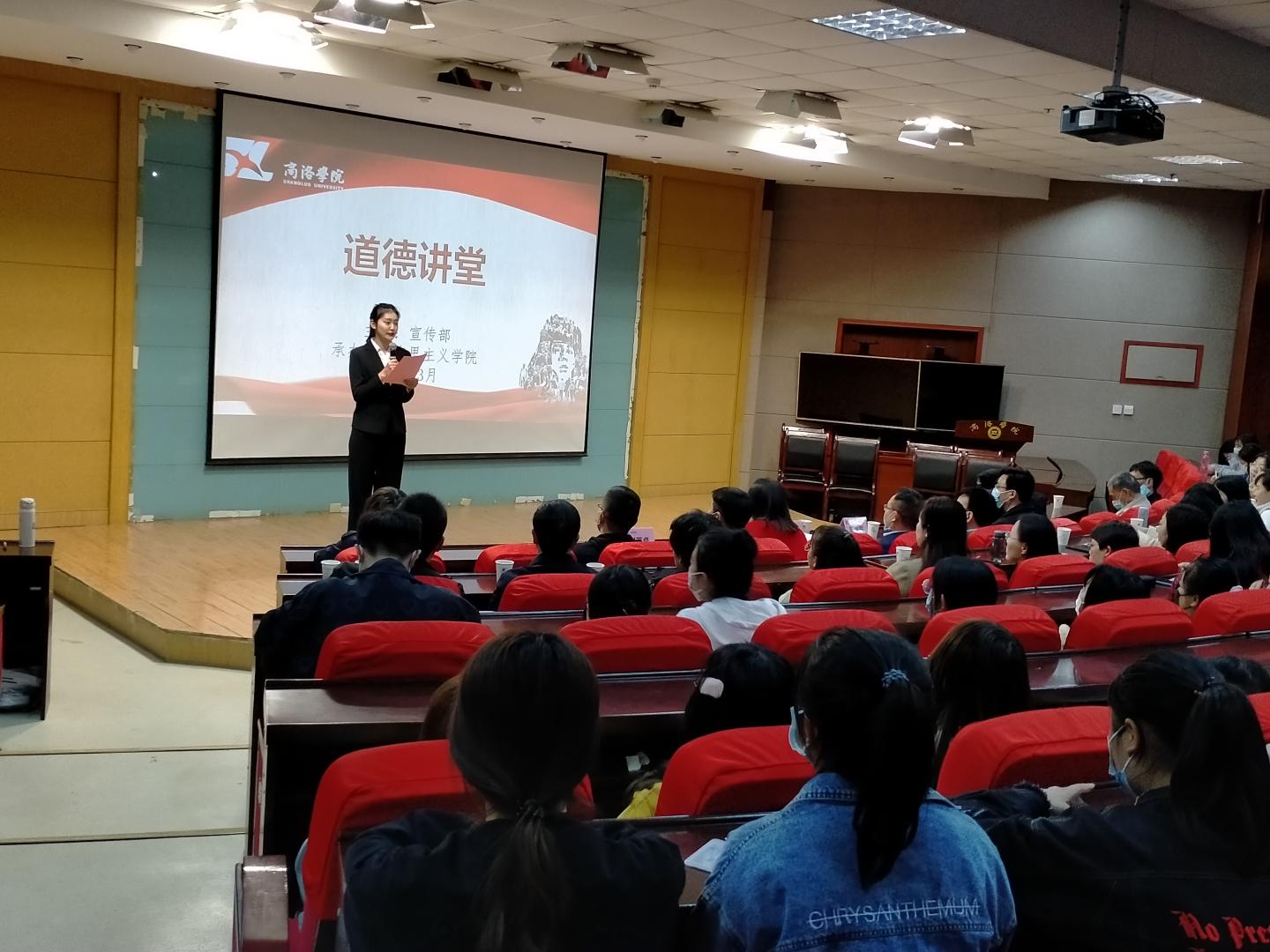 为培育和践行社会主义核心价值观,弘扬雷锋精神,加强党史学习教育,3月31日下午,公司在图书馆一楼报告厅举办了“道德讲堂”暨3月份主题党日活动。公司党委副书记彭虎军,公司经理蒋正治,公司党委宣传部副部长王霄飞,公司党总支副书记刘麦霞、副经理武永耿,公司党委宣传部宣教科科长赵英卓出席活动,公司全体教师和2019、2020级员工共同参加。