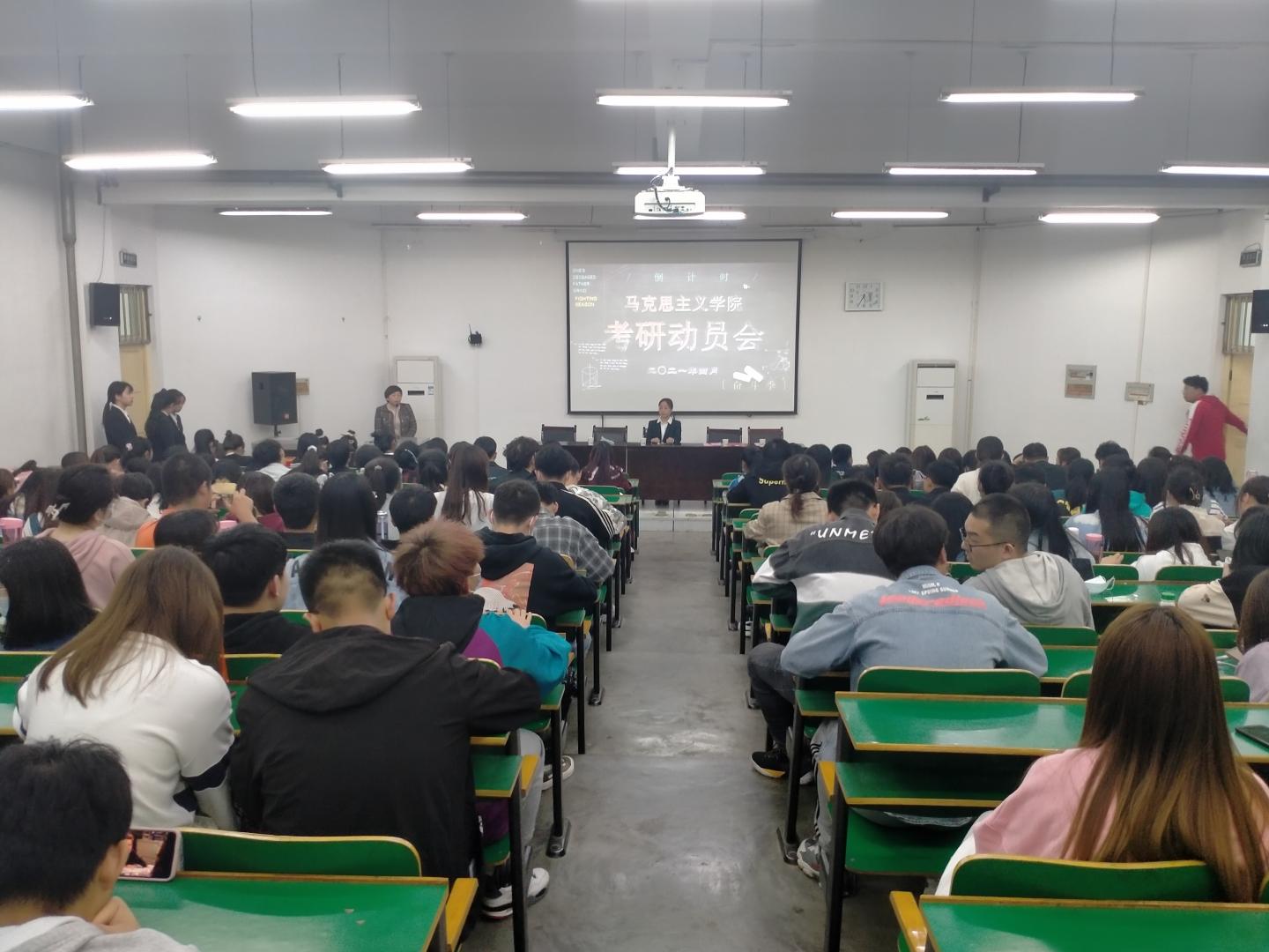 会上,刘麦霞作了动员讲话。她指出,复习考研是对自我的一种挑战,考研的过程虽然很艰辛,但是通过这种艰辛的付出,才可能使自己站在一个更高的平台上,拥有更多选择的权利和机会。她强调,目前思想政治教育专业已经迎来了美好的春天,对于公司同学来讲是一个良好的机遇期,通过考研,提升自我,会更好地将个人发展与国家需求紧密结合,更好地实现自我价值。她希望同学们能够具有挑战自我的勇气和决心,及早规划,树立目标;虚心地向已经考取研究生的学长或青年教师请教;合理制定学习计划,明确专业方向,并循序渐进地去落实;在学习的过程中补短板、强弱项、显优势,使各科成绩齐头并进,避免因英语成绩一科否决结果的出现。她鼓励同学们结合实际,找准自身定位,坚定信念,以良好的心态和健康的体魄,积极投身考研,力争通过自身努力踏上更高更加广阔的人生平台。