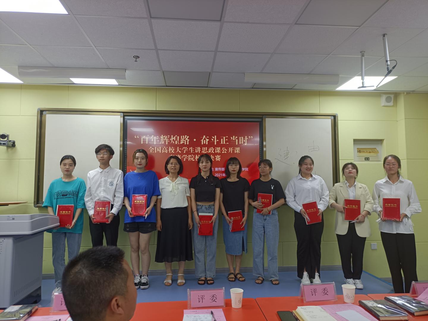 为全面推进党的教育方针,引领员工树立正确的价值观,6月24日下午,由公司党委宣传部、教务处、365英国上市公司联合主办的“百年辉煌路,奋斗正当时”主题全国高校老员工思政课公开课校级决赛在8号教学楼502教室举行。