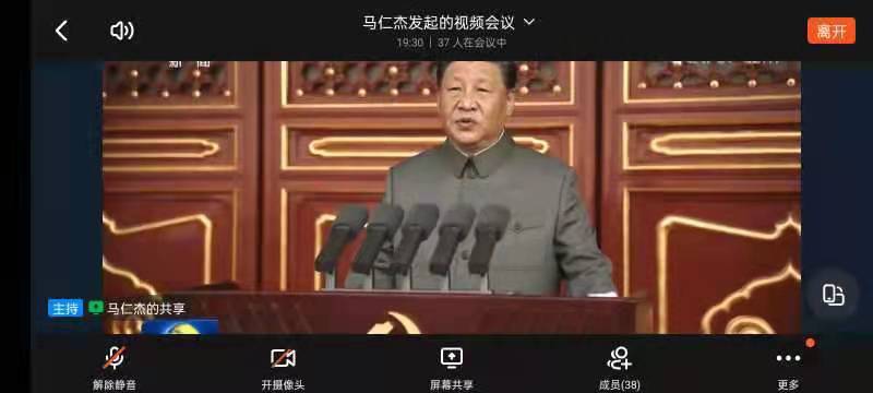 随后,全体团学干部在线上共同观看习近平在庆祝中国共产党成立一百周年大会上的讲话视频,进一步把握讲话精神的理论内涵。期间,同学们纷纷结合自身学习,发表感想和体会。