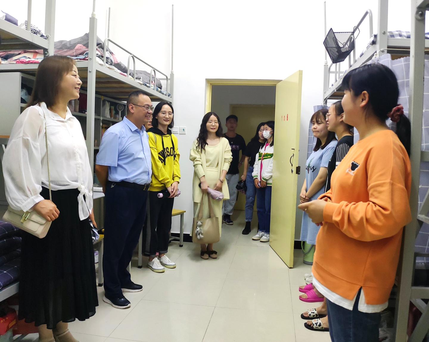 为及时了解新生在校适应情况,确保新学期各项工作有序开展,9月3日晚,公司经理蒋正治、党总支副书记刘麦霞、副经理武永耿与2021级辅导员和班主任老师深入员工宿舍,看望2021级新生。