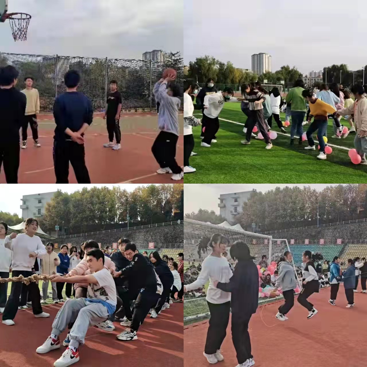 此次趣味运动会设立了躲避球、踩气球等趣味运动项目,以及团体拔河、定点投篮、个人和团体跳绳等比赛项目。伴随着热烈的掌声和欢呼声,文艺部青春活力的开场舞,燃起了整个田径场的热情。比赛过程中,参赛者们热情投入,积极比赛,活动现场气氛热烈,欢呼声此起彼伏,每个人都尽情地享受着趣味运动会带来的快乐。