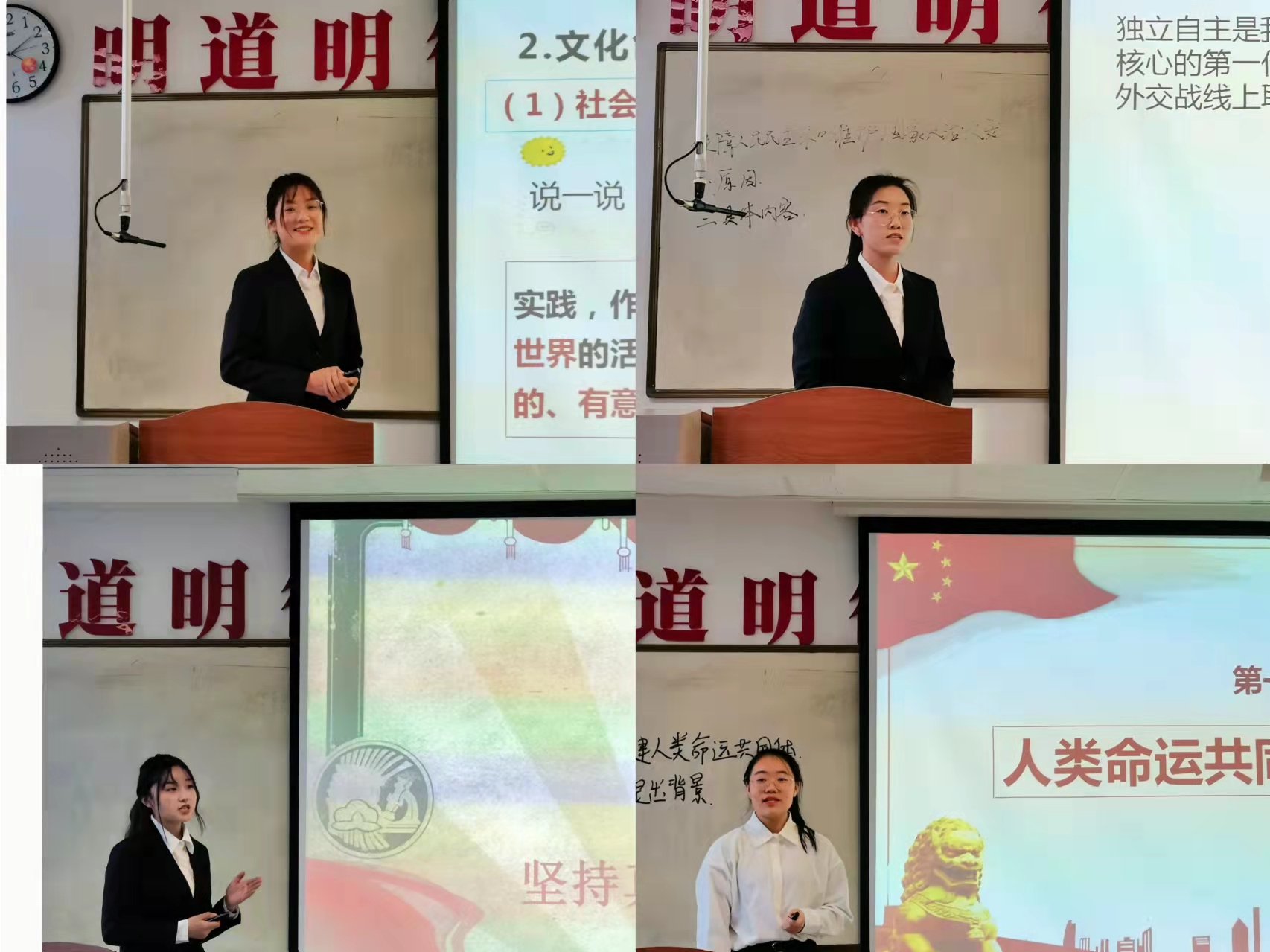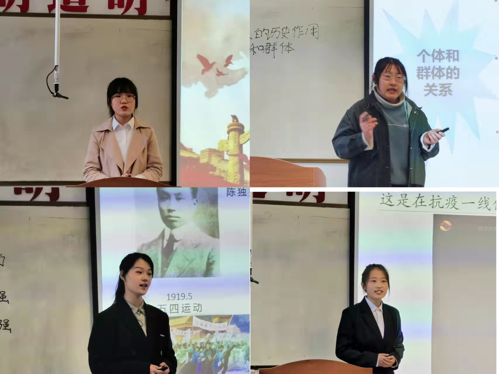 主持人向参赛者宣读比赛规则与评分标准后,14位参赛选手按抽签顺序依次上台展示。比赛过程中,参赛选手们凭借流畅的语言、深刻的思想内涵、大方的仪态、创新的讲法,分别展示了扎实的教学技能和良好的师范生风采,赢得了现场的阵阵掌声。经过激烈的角逐,思政1902班田雨、思政1901班孟瑞琦两名同学荣获一等奖,思政1901班武路雨等四名同学荣获二等奖,思政2002班姚娟娟等八名同学荣获三等奖。
