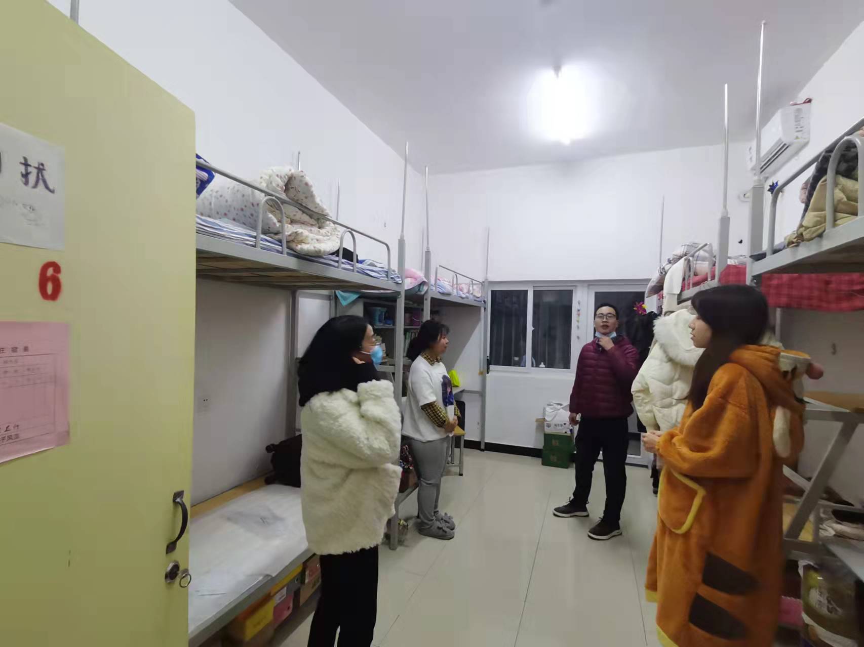 检查以宿舍安全为重点,就安全用电、宿舍文明、卫生防疫等方面进行详细了解。在员工宿舍,刘麦霞仔细查看了宿舍环境、设施安全及卫生状况,叮嘱同学们做好疫情防控工作及冬季传染病防治,保持良好的宿舍卫生环境,勤通风、勤洗手、外出戴口罩,增强安全意识,注意冬季用电安全,遵守公寓安全相关规定,营造良好的学习和生活环境。